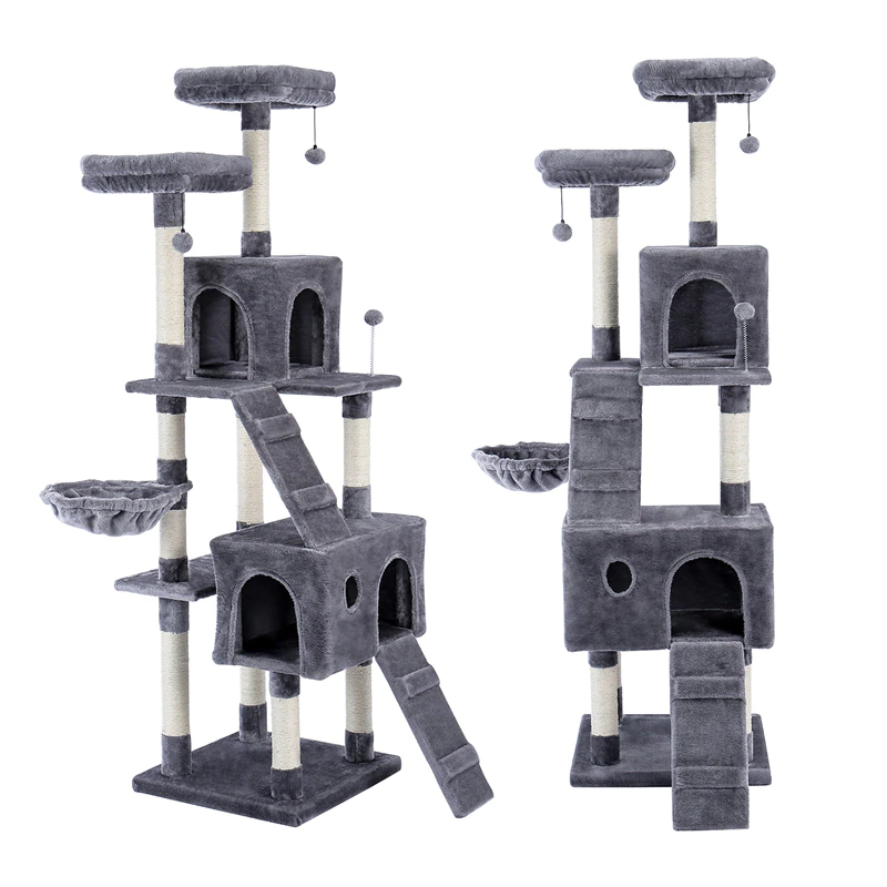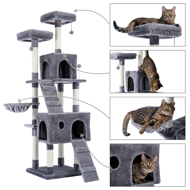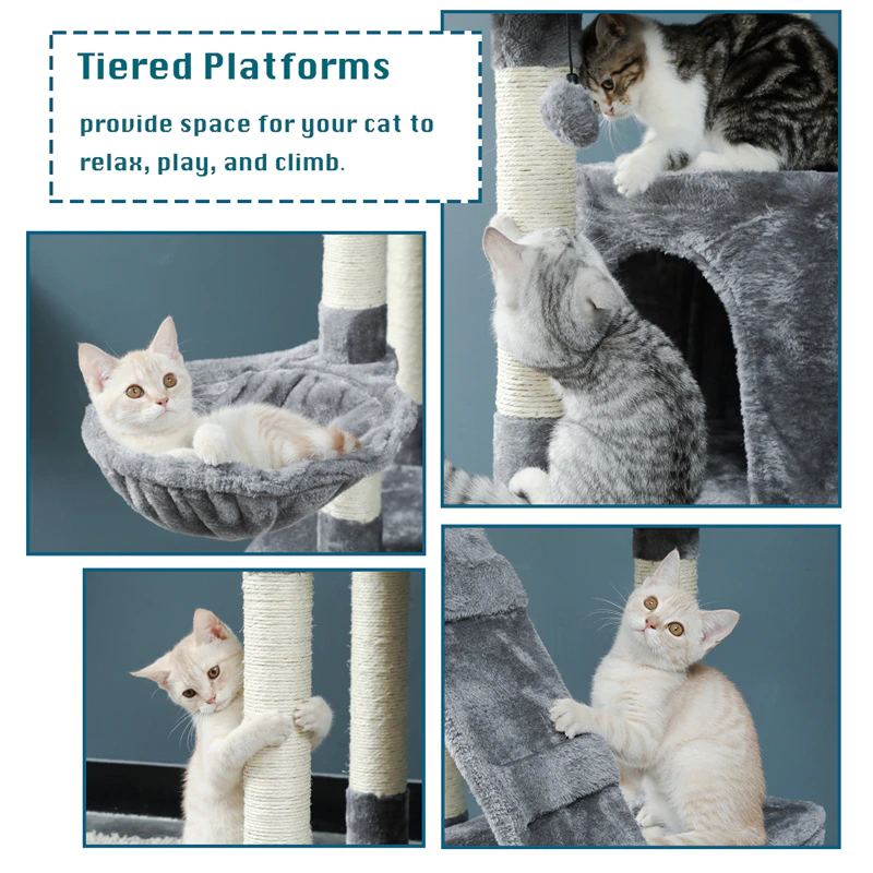 The multi-level cat tree design provides an ideal playhouse for your cats to romp about in.