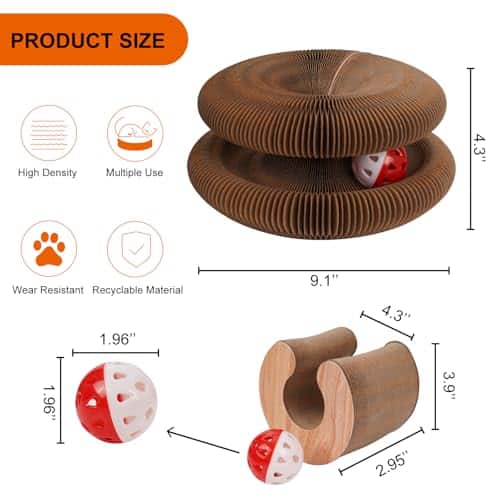 - Redirects Scratching Behavior: The Foldable Reversible Toy Accordion Cat Scratcher offers a suitable outlet for your cat’s natural scratching behavior, redirecting it away from your furniture and towards the toy.